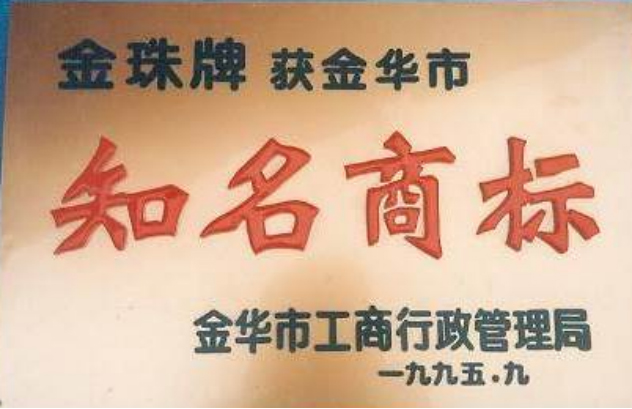“金珠”牌商標(biāo)獲得金華市“知名商標(biāo)”稱號(hào)