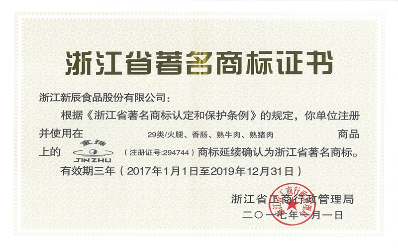 金珠牌廣式香腸、臘肉“第八屆浙江食品交易會(huì)金獎(jiǎng)”稱號(hào)